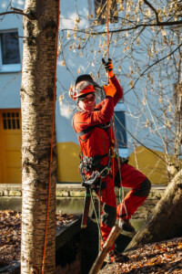 - Baumfällung vom Fällen in einem Stück bis hin zum stückweise Abtragen mit SKT, Hubarbeitsbühne oder Kran